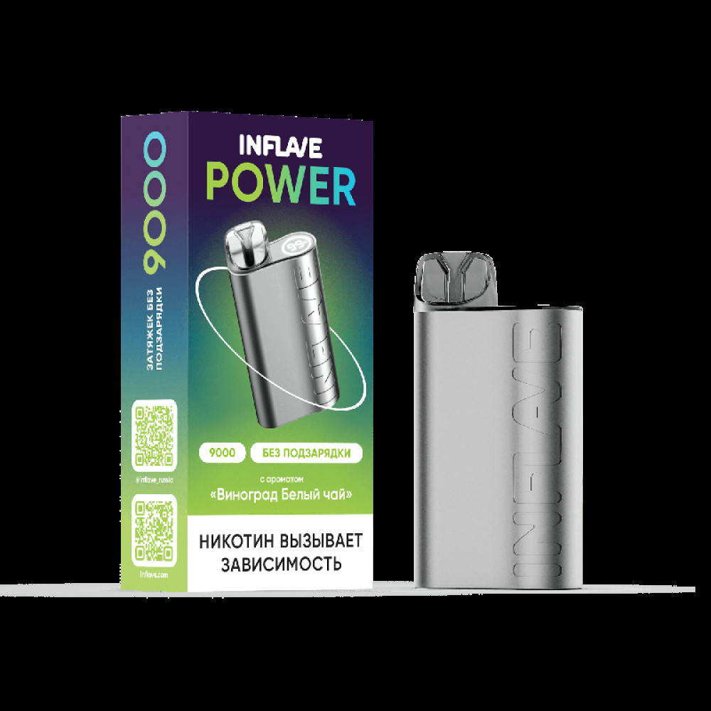 Электронная сигарета INFLAVE POWER 9000 затяжек Виноград Белый чай.